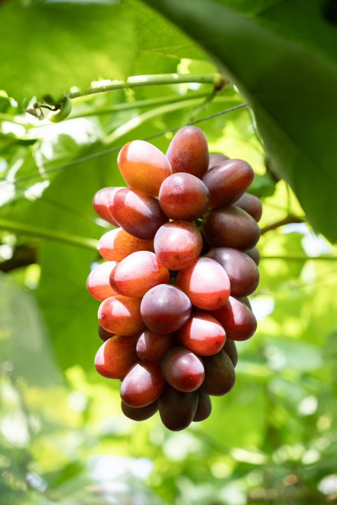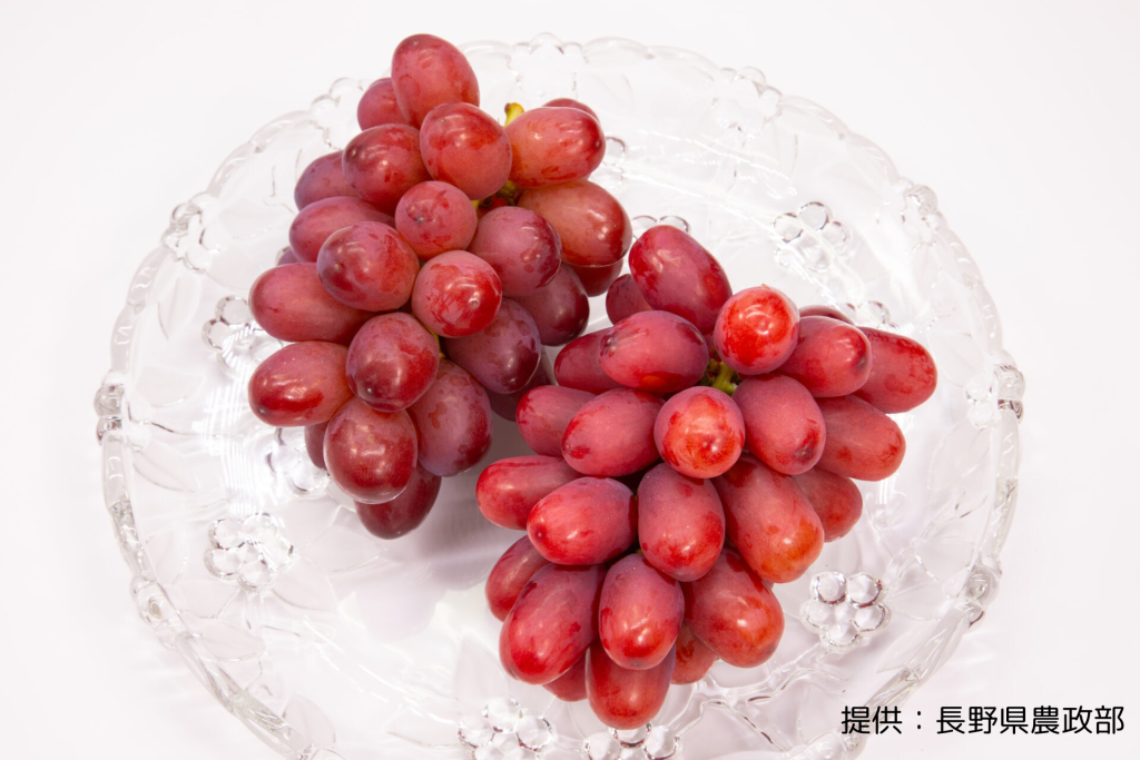 シャインマスカットよりも強く感じられる甘みや、パリッとした食べやすい皮が特徴の赤系ブドウです。