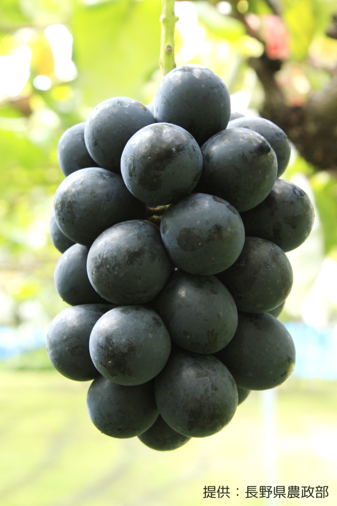 巨峰×リザマートの交配で長野県果樹試験場より誕生。品種登録は2004年で、3姉妹の中では最も早く登録されています。(ぶどう三姉妹®は長女、次女などは特に決められていません)